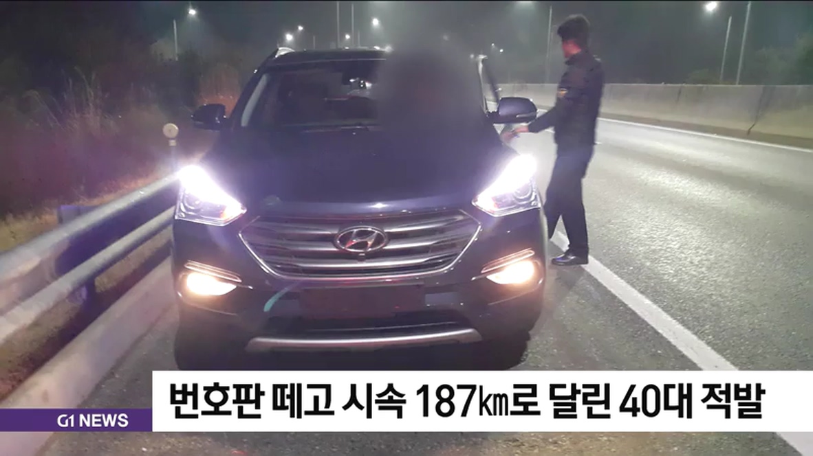 야간에 고속도로에서 번호판을 떼고 초고속으로 질주하던 40대 운전자가 암행순찰차에 적발됐습니다.