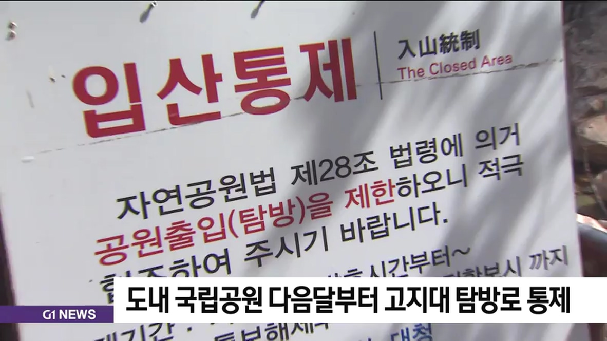 봄철 산불 예방과 자연 보호를 위해 도내 국립공원 고지대 탐방로 출입이 다음 달 4일부터 5월 15일까지 통제됩니다.