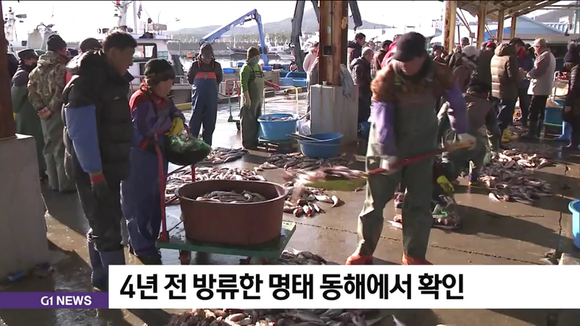 해양수산부는 최근 동해에서 잡은 명태의 유전자를 분석한 결과 7마리가 방류 명태로 확인됐으며, 크기 등을 생각하면 모두 2015년 12월 고성 앞바다에 방류한 개체로 추정된다고 밝혔습니다.