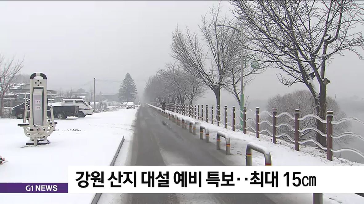 오늘 밤부터 내일 새벽까지 강원도 산지를 중심으로 대설 예비 특보가 내려진 가운데, 도 내 곳곳은 밤 사이 비나 눈이 내리겠습니다.