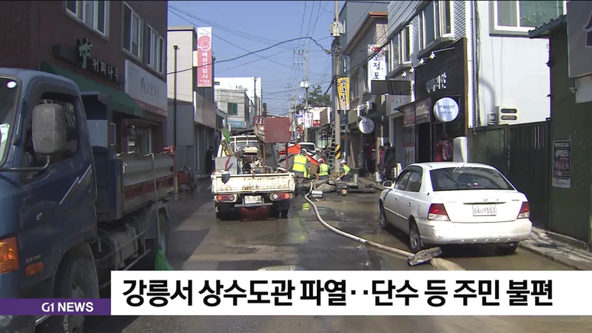오늘 오전 9시 40분쯤 강릉시 포남동에서 상수도관이 터져, 인근 주택에 수돗물 공급이 중단되는 등 주민들이 불편을 겪었습니다.