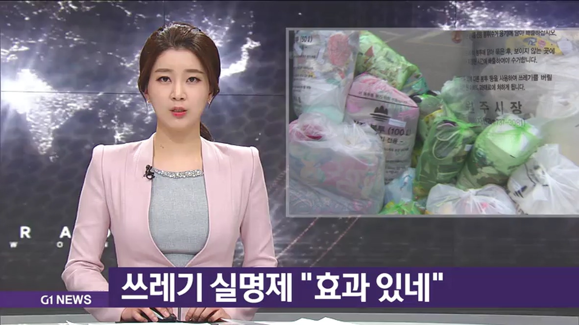 원주의 한 마을에서 쓰레기 봉투에 이름을 적어 버리는 이른바, 쓰레기 실명제를 도입한 결과 쓰레기 배출량도 줄고 불법 투기도 감소한 것으로 나타났습니다.