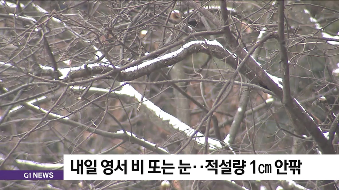 철원과 화천 등 영서 북부지역에 1cm 안팎의 눈이 내리겠고, 비는 5mm 정도가 내리겠습니다.