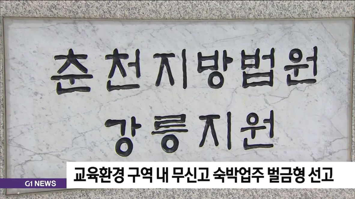춘천지법 강릉지원 형사2단독 이여진 판사는 교육환경보호에 관한 법률과 공중위생관리법 위반 혐의로 기소된 숙박업주 45살 여성 김모씨에게 벌금 400만원을 선고했습니다.