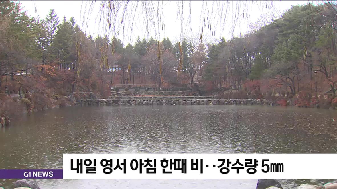 내일 강원도는 대체로 맑겠지만 영서지역은 아침 한때 비가 내리는 곳이 있겠습니다.