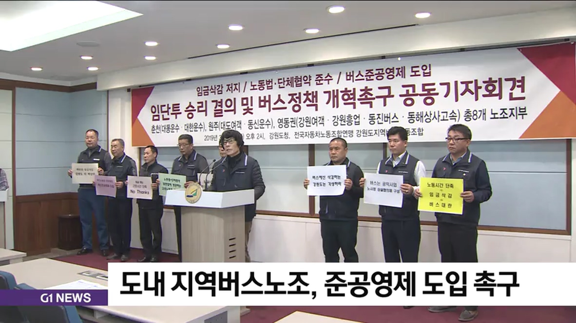 춘천과 원주, 영동지역의 버스노조는 근로기준법 개정에 따른 주 52시간 근무제로 근로자들의 연장근무가 불가능해져 생존이 위협받고 있다며 버스 준공영제 도입을 촉구했습니다.