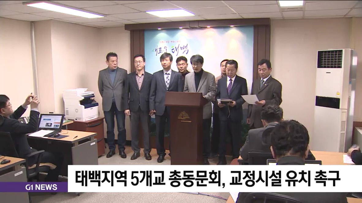 황지 중.고와 장성여고 등 태백지역 5개 학교 총동문회는 오늘(27일) 태백시청 브리핑룸에서 기자회견을 열고, 교정시설 유치를 촉구하는 성명서를 발표했습니다.