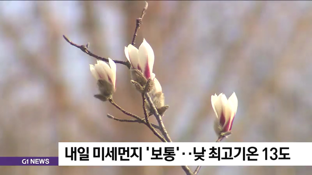 내일 아침 최저기온은 영서지역이 영하 6도에서 영하 1도, 영동지역이 0도에서 4도의 분포를 보이겠고, 낮 최고기온은 5도에서 13도로 오늘보다 조금 높겠습니다.
