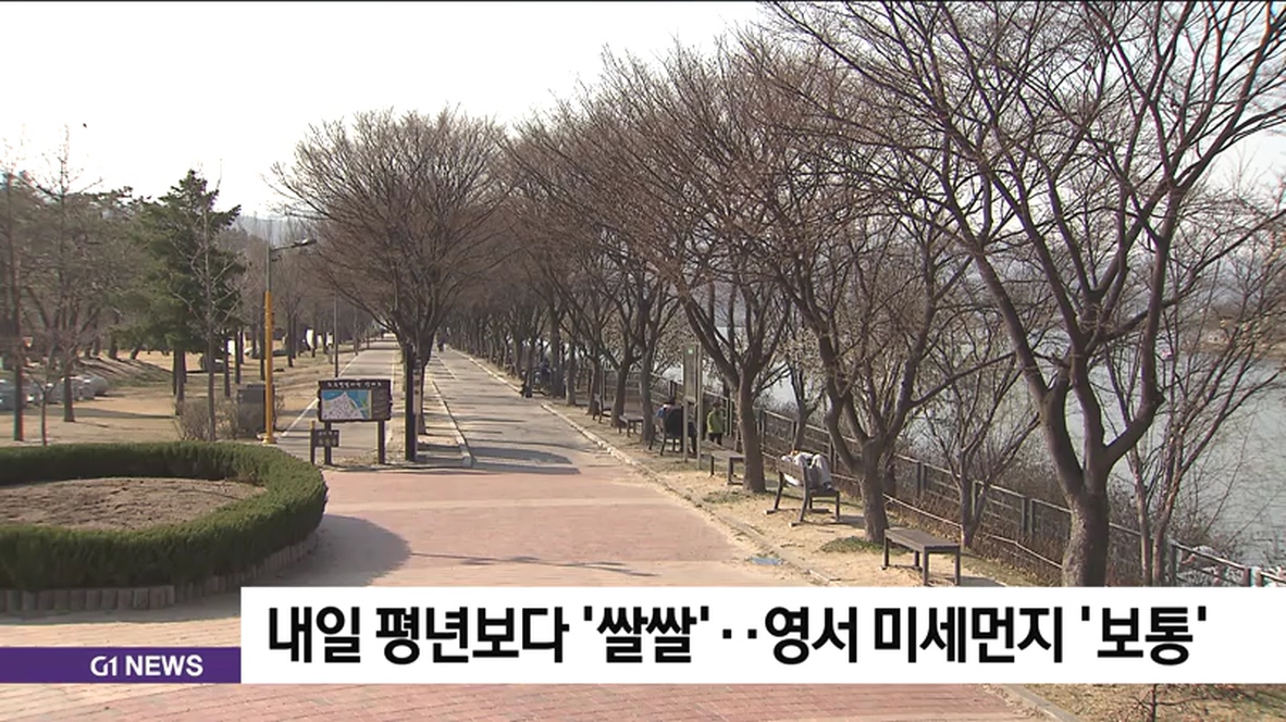내일 평년보다 '쌀쌀'..영서 미세먼지 '보통'