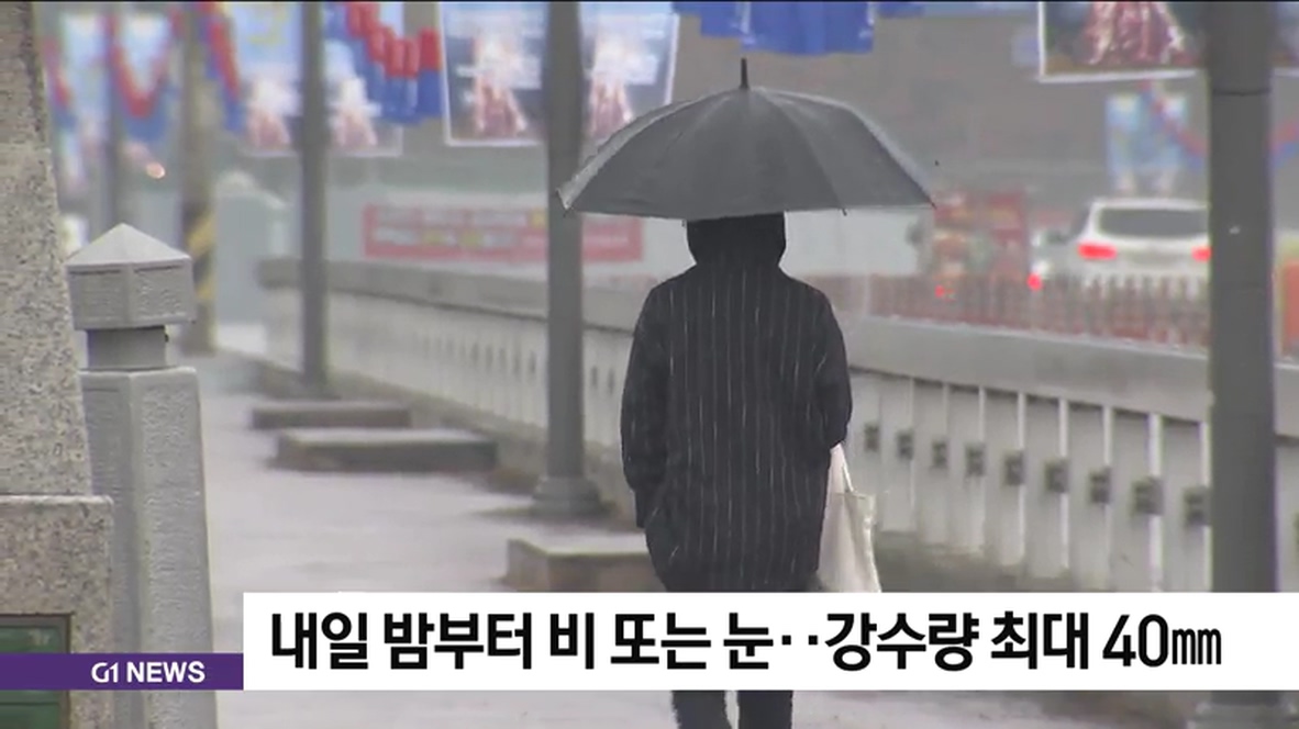 내일 밤부터 비 또는 눈..강수량 최대 40mm