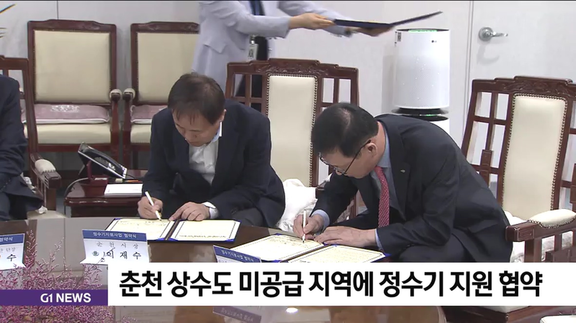 이번 협약에 따라, 오는 2021년까지 춘천지역 내 상수도가 공급되지 않는 지역 가운데 지하수 수질 부적합 판정을 받은 가구를 대상으로 정수기를 지원합니다.