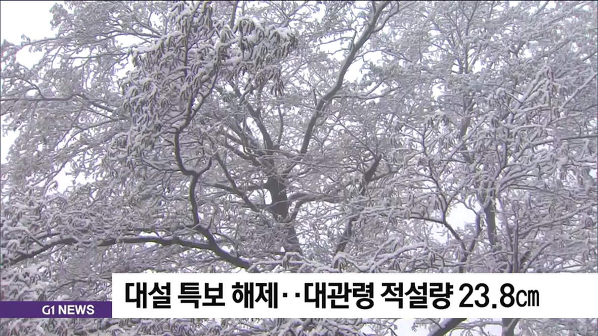 도내 대설 특보는 오늘 정오를 기점으로 모두 해제됐지만, 산간에는 20cm가 넘는 많은 눈이 쌓였습니다.