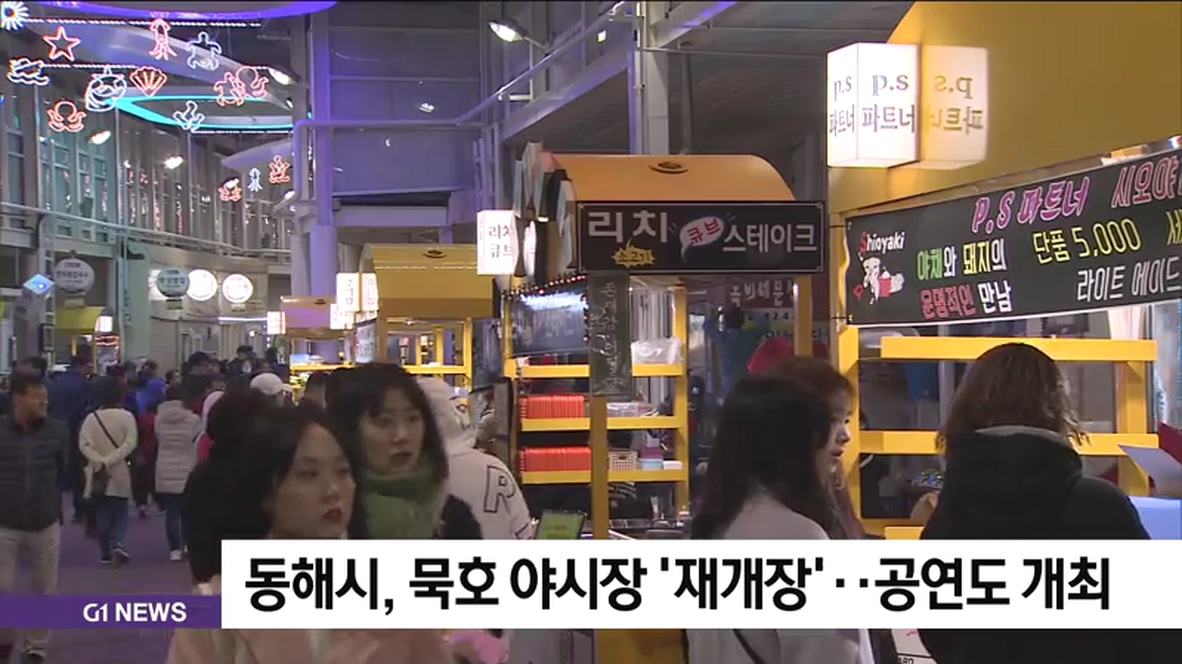 동해시는 이번에 묵호 야시장을 재개장하면서 기존 시장터에 광장 구역을 포함해 관광객들이 색다른 먹을거리와 함께 다양한 공연을 즐길 수 있도록 운영을 개선했다고 밝혔습니다.