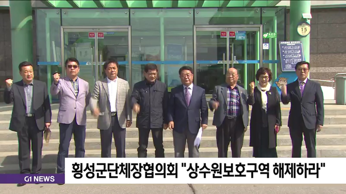 횡성군 각급단체장협의회는 오늘 횡성군청 앞에서 원주 상수원보호구역 해제를 촉구하는 성명서를 발표했습니다.