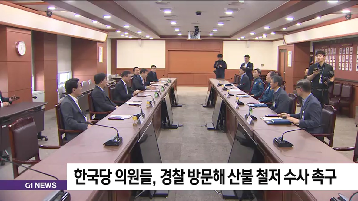 이양수 도당 위원장을 비롯한 5명의 의원은 강원경찰청에서 간담회를 갖고, "전봇대에서 불이 시작해 큰 피해를 남긴 분명한 인재임에도, 한전은 사죄는 커녕 오히려 발뺌하고 책임을 회피하고 있다"고 지적했습니다.
