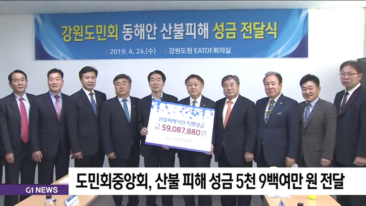 강원도민회중앙회 회장단은 오늘(24일) 강원연구원에서 김성호 강원도 행정부지사를 만나 산불 피해 성금 5천9백여 만 원을 전달했습니다.