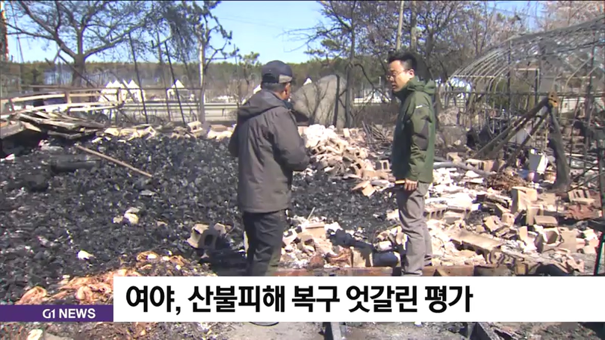 당정청이 산불 피해복구 계획을 발표한 가운데, 민주당과 한국당이 엇갈린 평가를 내놨습니다.