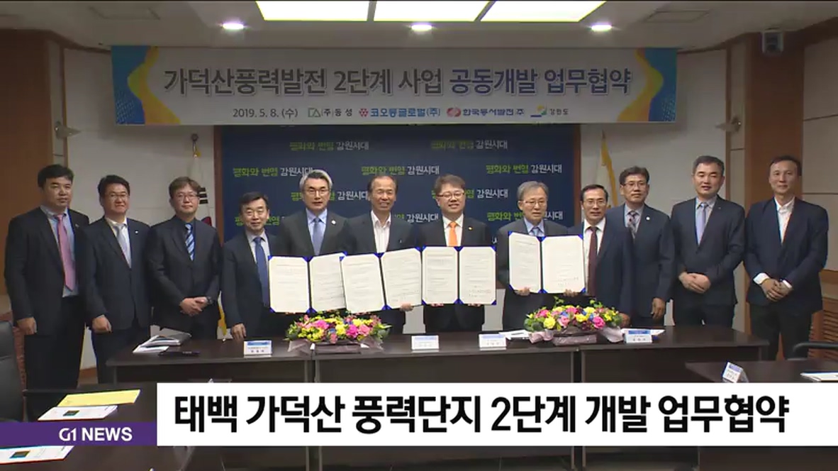 강원도와 한국동서발전 등은 도청에서 풍력 발전단지 2단계 사업 공동 개발을 위한 업무협약을 체결하고, 25.2MW 규모의 풍력단지를 조성하기로 했습니다.