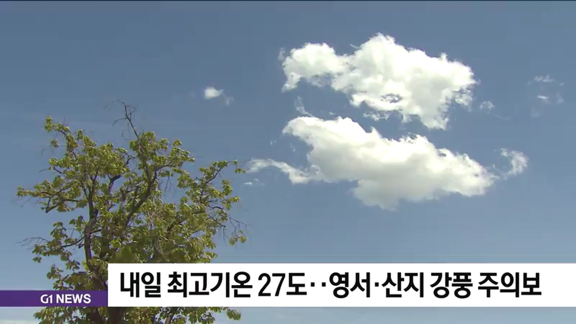 내일 최고기온 27도..영서·산지 강풍 주의보