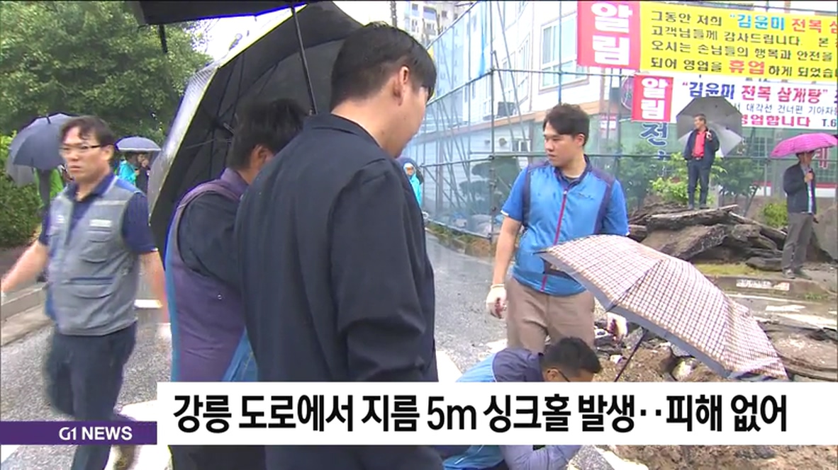 강릉 도로에서 지름 5m 싱크홀 발생..피해 없어