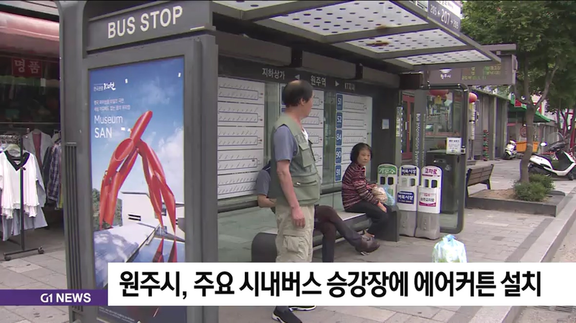 원주시는 시민들의 여름철 폭염 피해 예방과 쾌적한 대중교통 환경 조성을 위해 시내 주요 버스 승강장에 에어커튼을 설치했습니다.