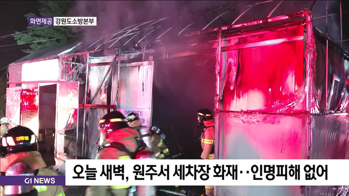 오늘 새벽 1시 55분쯤 원주시 무실동의 한 세차장에서 불이 나, 10여분 만에 꺼졌습니다.