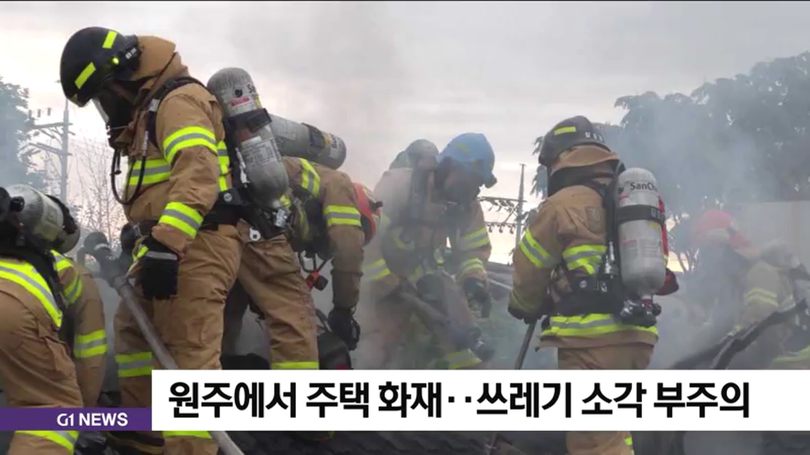 원주에서 주택 화재.. 쓰레기 소각 부주의