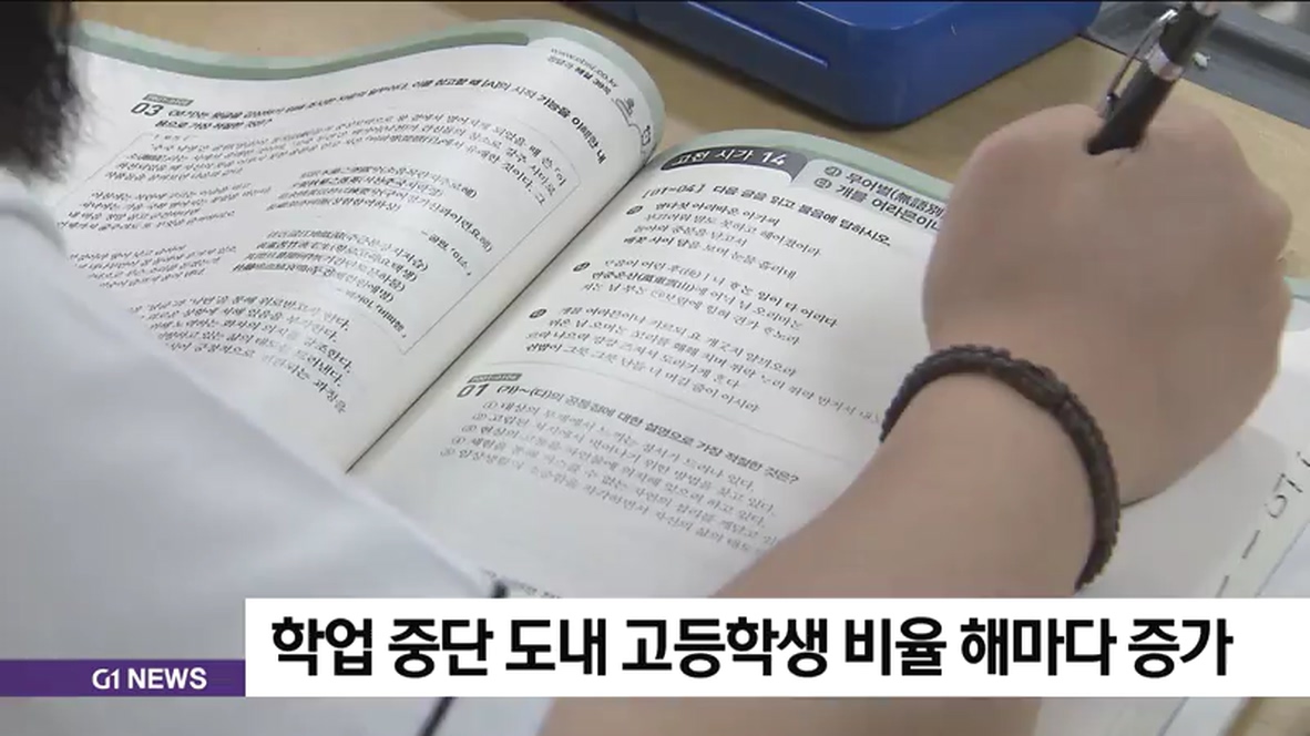 입시전문업체 종로학원하늘교육이 발표한 '시.도별 전국 고교 학업중단학생 비율'에 따르면, 도내 학업 중단 고교생 비율은 지난 2015년 1.4%에서 2016년 1.5%, 2017년 1.6%에 이어 지난해 1.8%로 매년 늘고 있습니다.
