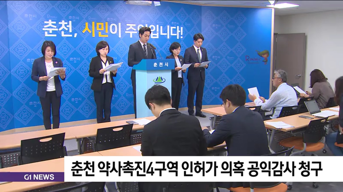 춘천시의회 일부 의원들로 구성된 '춘천시 신청사 건립 검증과 개발지구 조사.대책특별위원회'가 춘천 약사촉진4구역 주택개발정비사업에 대해 감사원 공익 감사를 청구했습니다.
