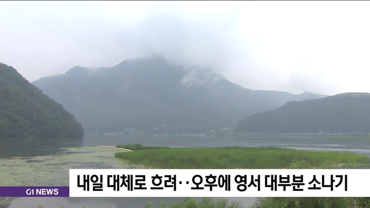 내일 강원도는 대체로 흐린 가운데, 오후에는 영서 지역을 중심으로 소나기가 내리면서 더위가 조금 누그러지겠습니다.
