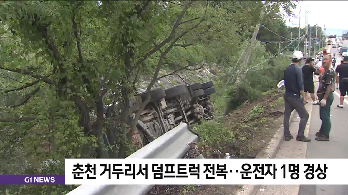 춘천 거두리서 덤프트럭 전복..운전자 1명 경상