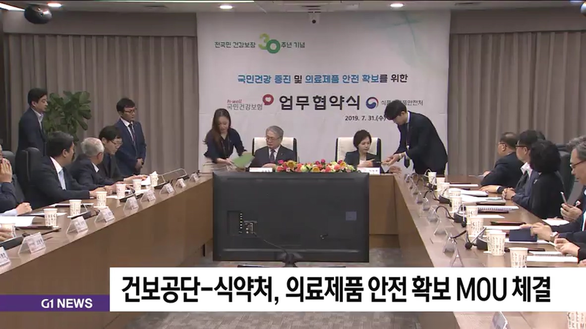 국민건강보험공단과 식품의약품안전처는 오늘 건보공단 본부에서 '국민건강 증진과 의료제품 안전 확보'를 위한 업무협약을 체결했습니다.