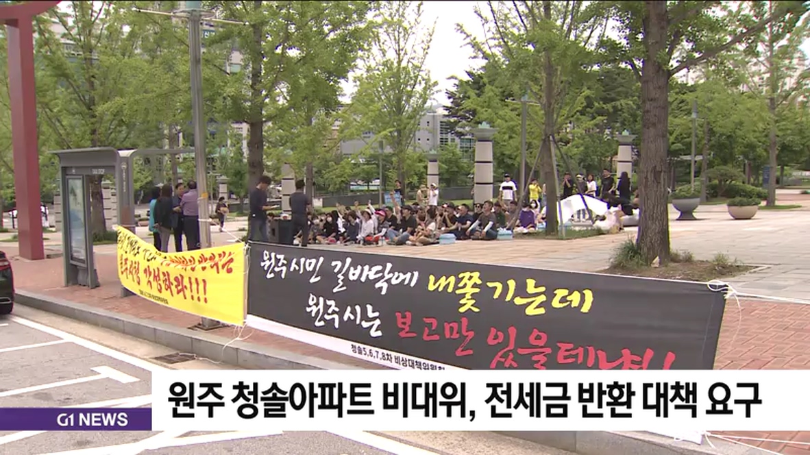 청솔아파트 비상대위원회는 오늘(31일) 원주시청 앞에서 집회를 열고, "임대 사업자가 지난해 말부터 전세 계약이 끝난 100여 세대의 전세금을 돌려주지 않고 있다"며, "규모만 90억원에 달하는 것으로 추정된다"고 주장했습니다.
