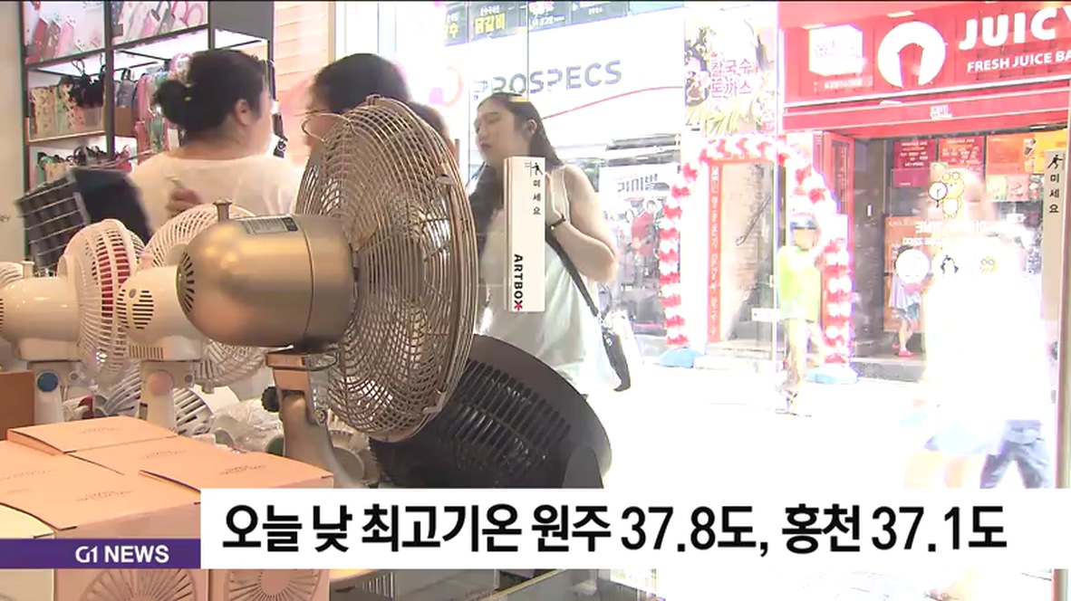 낮 최고 기온이 원주 37.8도, 화천 37.5도, 홍천 37.1도 등을 기록했습니다.