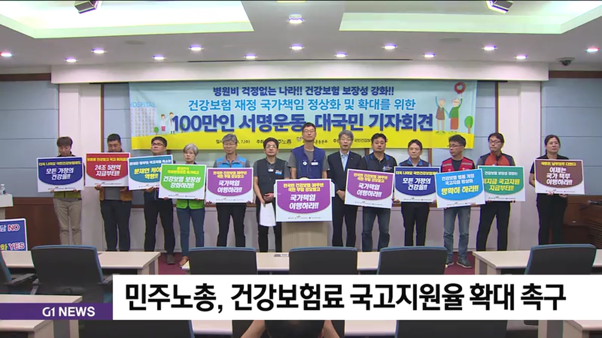 민주노총 강원지역본부는 오늘(7일) 강원도청에서 정부의 건강보험료 국고지원율 확대를 촉구하는 기자회견을 열었습니다.