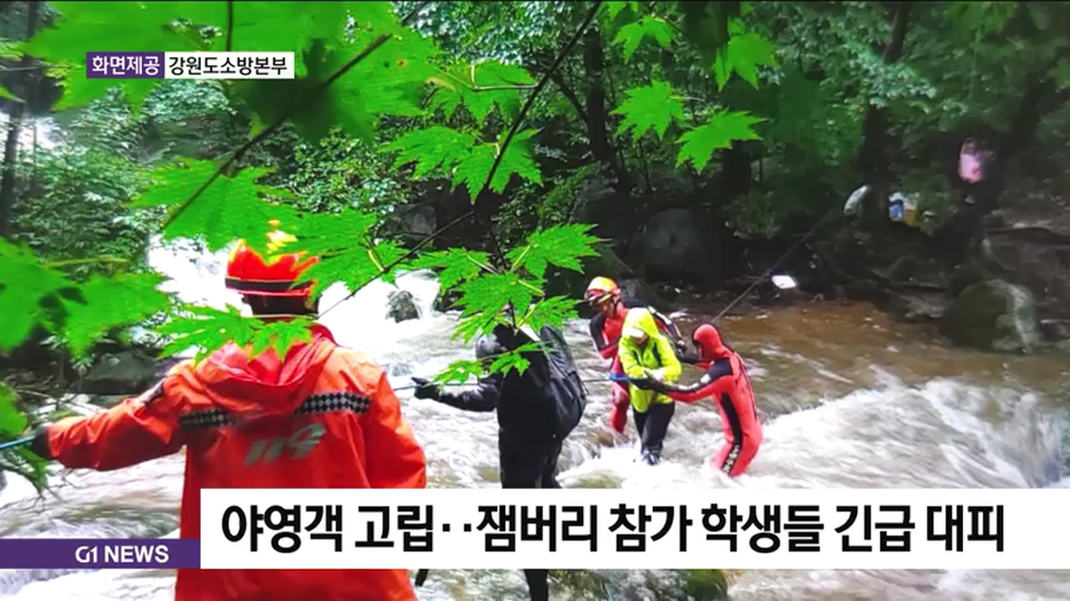 앞서 새벽 2시부터 5시 사이에는 고성 세계 잼버리 수련장에서 제17회 걸스카우트 세계 잼버리 야영대회에 참가했던 25개국, 80여 명의 학생들이 호우로 인해 인근 체육관 등으로 긴급 대피했습니다.