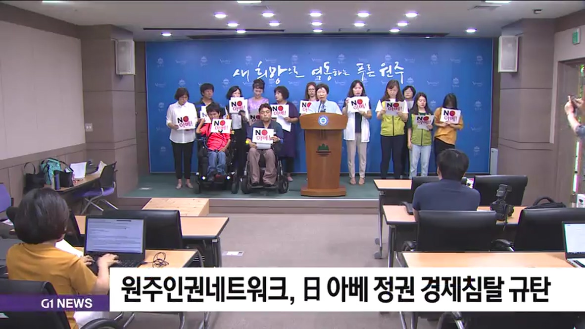 원주시민연대와 여성민우회 등 원주지역 8개 시민사회단체로 구성된 원주인권네트워크는 "일본 아베 정권이 끊임없는 역사왜곡과 인권침해 행위에 대해 사과는커녕 경제보복을 가하고 있다"고 비판했습니다.