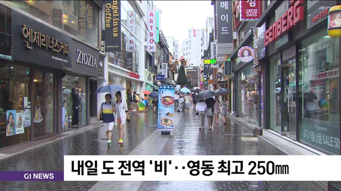 비는 영서지역엔 20에서 60mm, 영동지역엔 50에서 150mm, 많은 곳은 250mm가 넘는 곳도 있겠습니다.