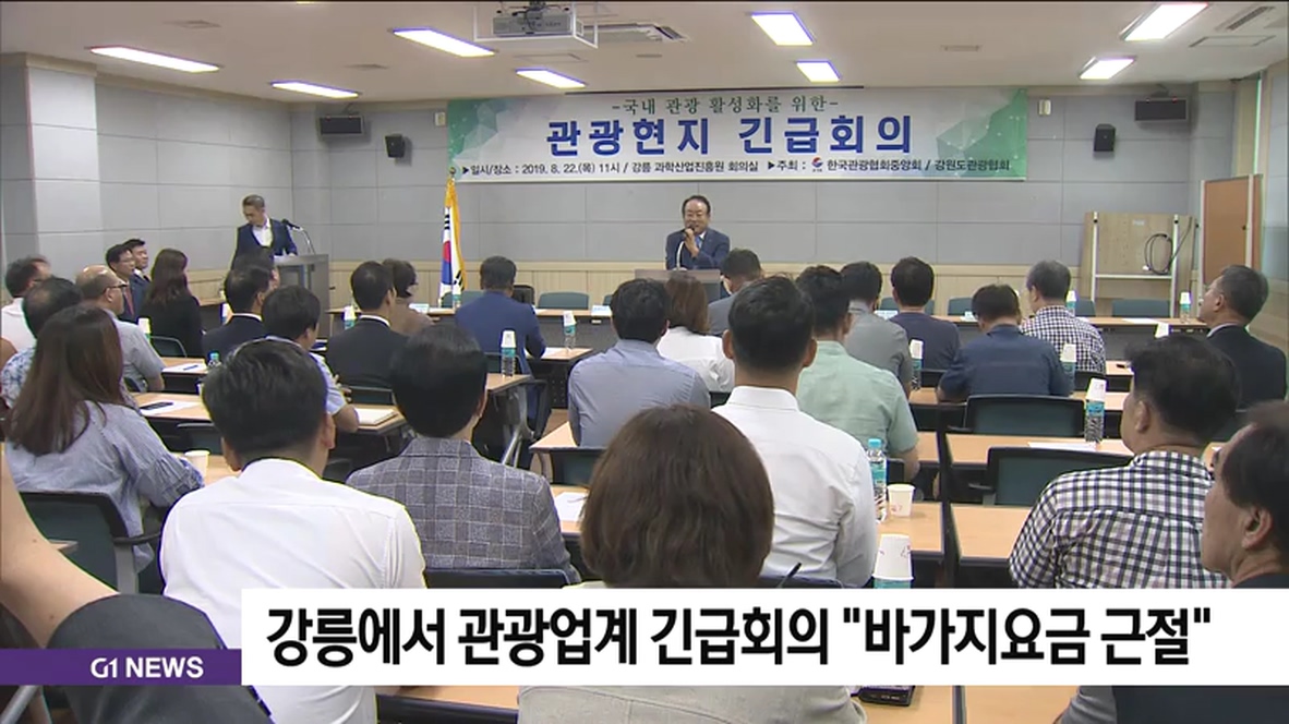이번 회의에는 한국관광협회와 강릉시 관계자 등 40여 명이 참석해 최근 언론과 인터넷 포털 등에서 지적받고 있는 강릉 지역 관광지 바가지요금에 대한 해결책을 논의하고 결의문을 채택했습니다.