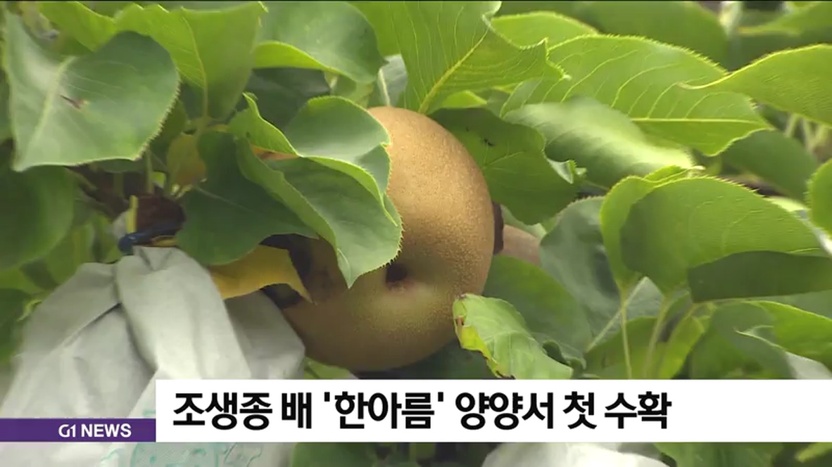 농촌진흥청은 양양군 현남면 정중환씨 농가에서 조생종 배인 '한아름' 재배에 성공해 오늘 첫 수확을 했다고 밝혔습니다.