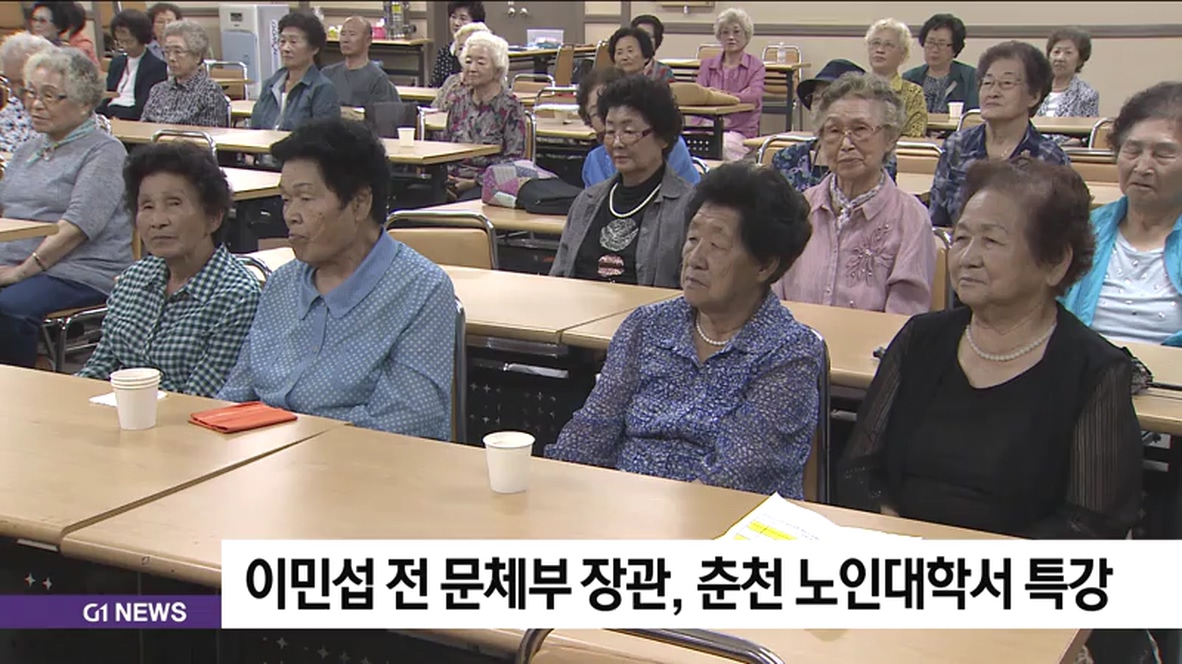 춘천노인대학은 오늘, 시민복지회관에서 이민섭 전 초대 문화체육부장관을 초청해, 노인대학 재학생 90명을 대상으로 특강을 열었습니다.