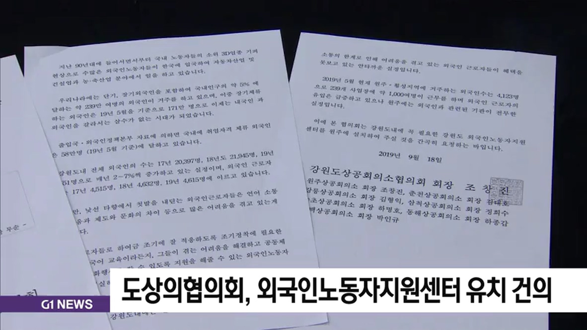 협의회는 오늘(18일) 부산에서 열린 제53차 회의에서 원주상공회의소가 발의한 '강원도 외국인노동자 지원센터 유치 건의문'을 채택하고, 고용노동부 등 관련 기관에 보낼 계획입니다.