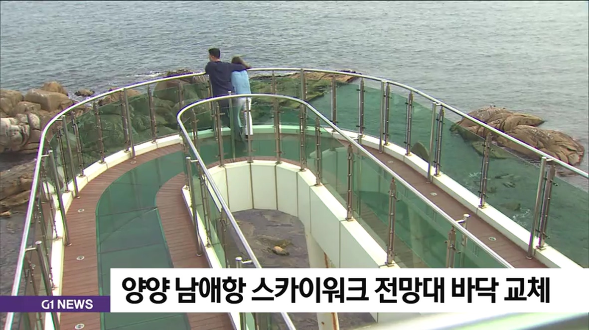양양군은 천500만원을 들여 현남면 남애항에 설치된 남애항 스카이워크 전망대 유리바닥을 교체했다고 밝혔습니다.