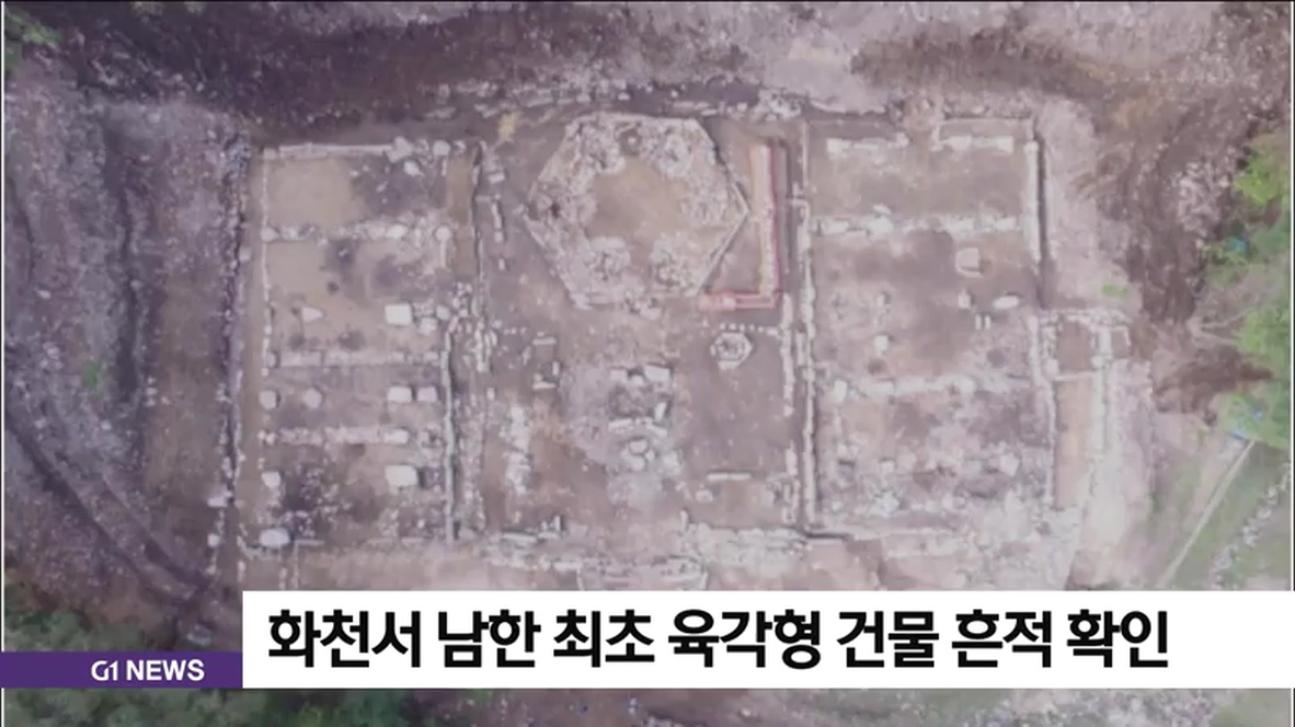 화천군과 강원고고문화연구원은 화천군 하남면 계성리 인근에서 고려시대 전기에 조성한 것으로 추정되는 절터에서 평면 육각형 건물터가 발견됐다고 밝혔습니다.