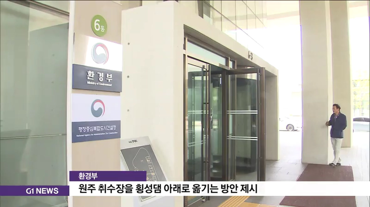 환경부는 오늘 강원도와 원주시, 횡성군, 수자원공사 관계자를 정부세종청사로 불러, 원주 장양리에 있는 취수장을 횡성댐 아래인 갑천면 대관대리로 이전하는 방안을 제시했습니다.