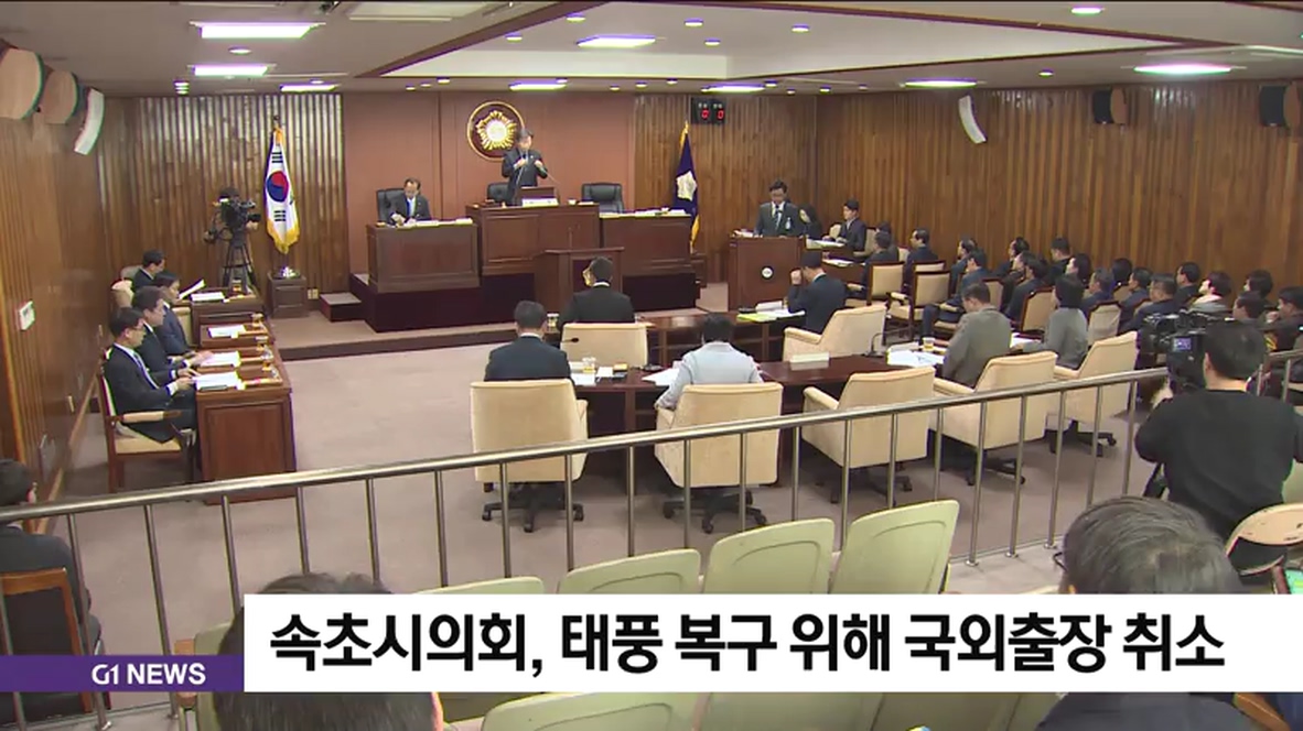 속초시의회가 태풍 '미탁' 피해복구를 돕기위해 공무국외 출장을 전격 취소했습니다.