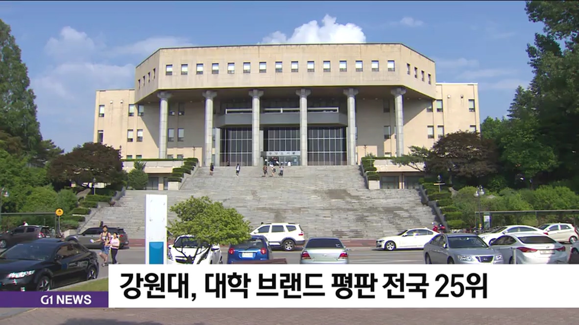한국기업평판연구소가 발표한 자료에 따르면 강원대학교는 전국 100개 대학교 중 25위를 기록해, 지난 4월 순위보다 18단계 상승했습니다.