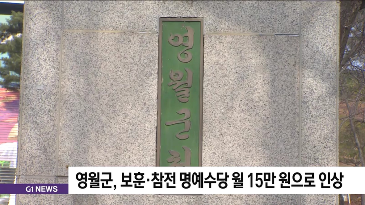 영월군이 내년부터 국가보훈대상자 보훈 명예수당과 참전유공자 참전 명예수당을 월 10만원에서 15만원으로 인상하기로 했습니다.