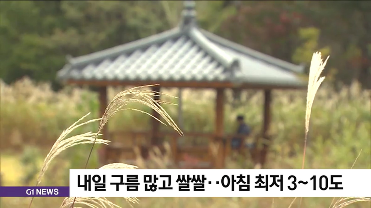 아침 최저기온은 3도에서 10도, 낮 최고기온은 영서지역이 13도에서 15도, 영동지역은 14도에서 19도의 분포로 오늘보다 쌀쌀하겠습니다.