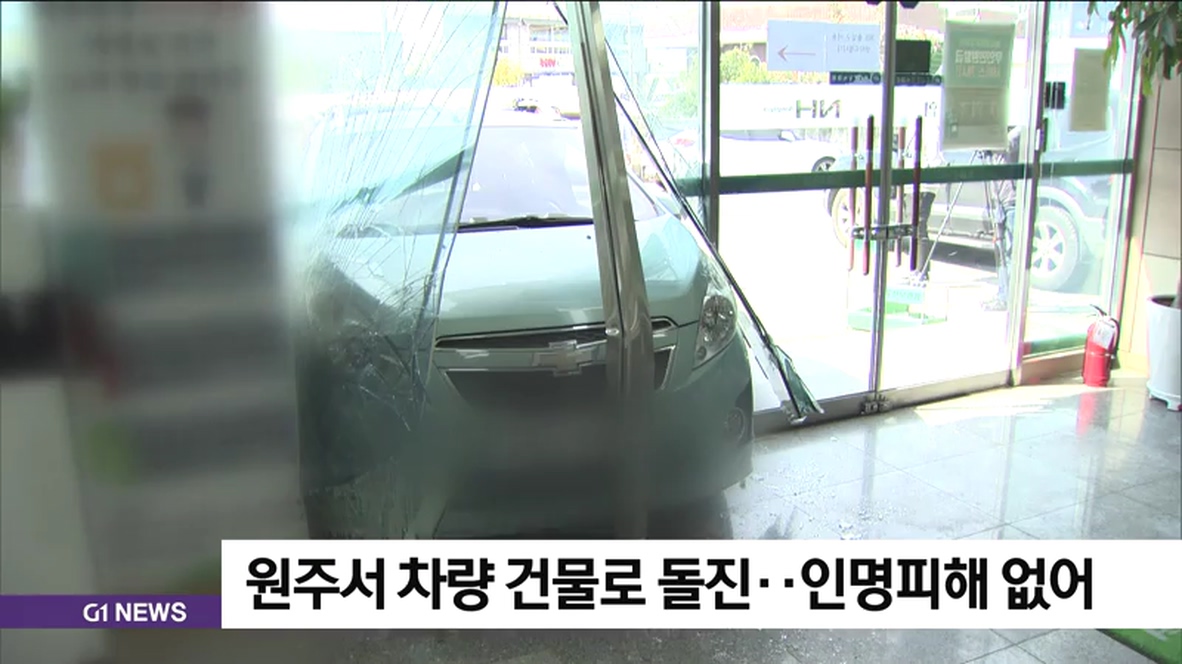 오늘 오전 11시쯤 원주시 행구동의 한 은행 주차장에서 70살 A씨가 몰던 스파크 차량이 건물로 돌진했습니다.